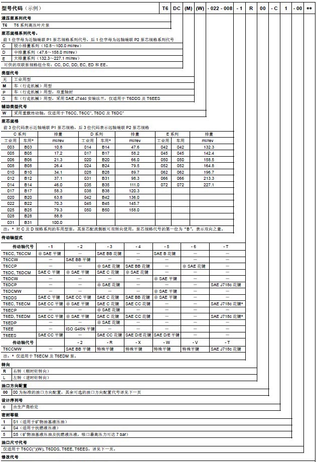 DENISON-T6CC-020-014-1R00-B1丹尼遜雙聯(lián)葉片泵型號說明