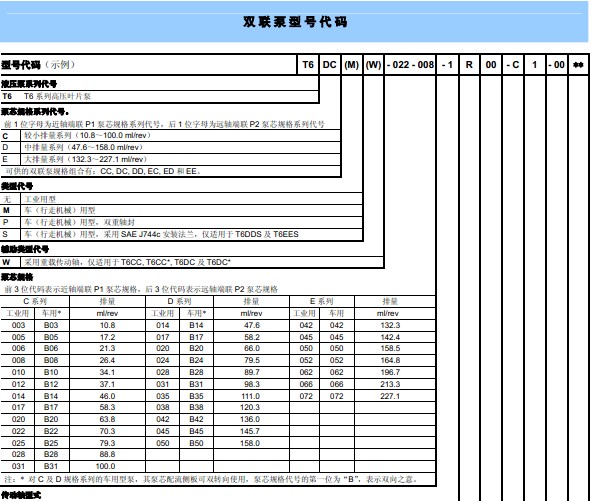 Denison雙聯(lián)葉片泵T6DC型號(hào)代碼: